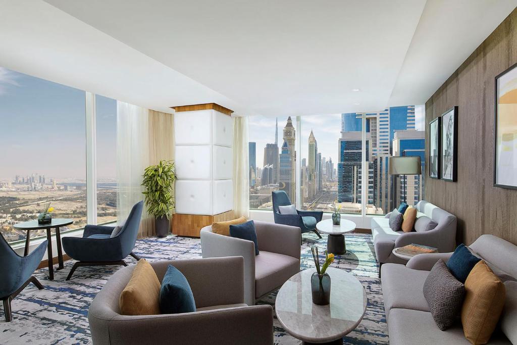 تتميز الغرف بديكور عصري وألوان دافئة، بالإضافة إلى وسائل الراحة الحديثة مثل خدمة الواي فاي المجانية وتلفزيون بشاشة مسطحة. كما يمكن للضيوف الاستمتاع بإطلالات بانورامية على أفق دبي الخلاب.