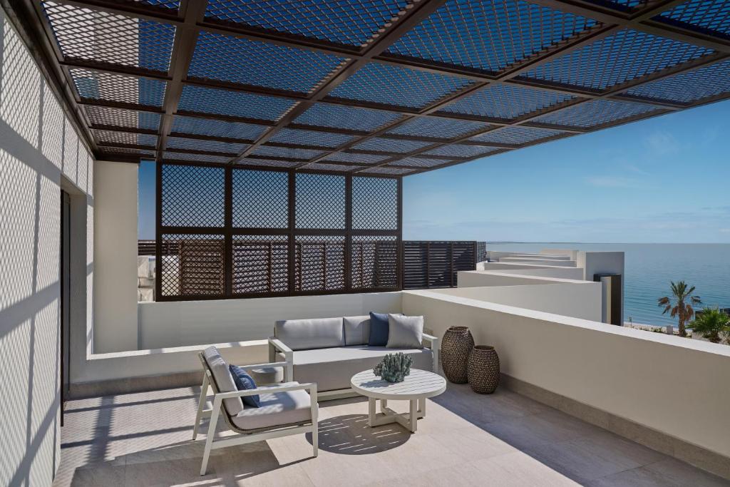 تتميز غرف المنتجع بإطلالات خلابة على البحر، مع تصميمات عصرية وأثاث فاخر. يتمتع الزوار أيضًا بتجربة إقامة فريدة، حيث تتوفر جميع المرافق الحديثة التي تلبي احتياجاتهم، مما يوفر لهم شعورًا بالراحة والخصوصية خلال إقامتهم.