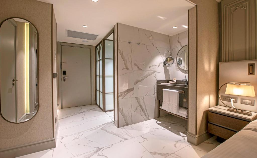 يوفر أيضًا مجموعة متنوعة من المرافق والخدمات الراقية، بما في ذلك مطاعم ومقاهي عالمية، ومركز للياقة البدنية، ومنتجع صحي، ومسبح داخلي. وهو من أفخم فنادق بيوغلو إسطنبول.